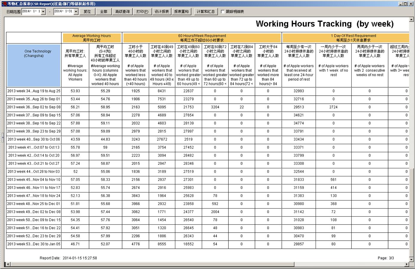 實施方案:軟件開發,處理5天內工時超過50小時的人員名單,另外保存超過50小時的人員名單,對超時人員進行刷卡校驗和提醒(請有薪假不作為統計依據)