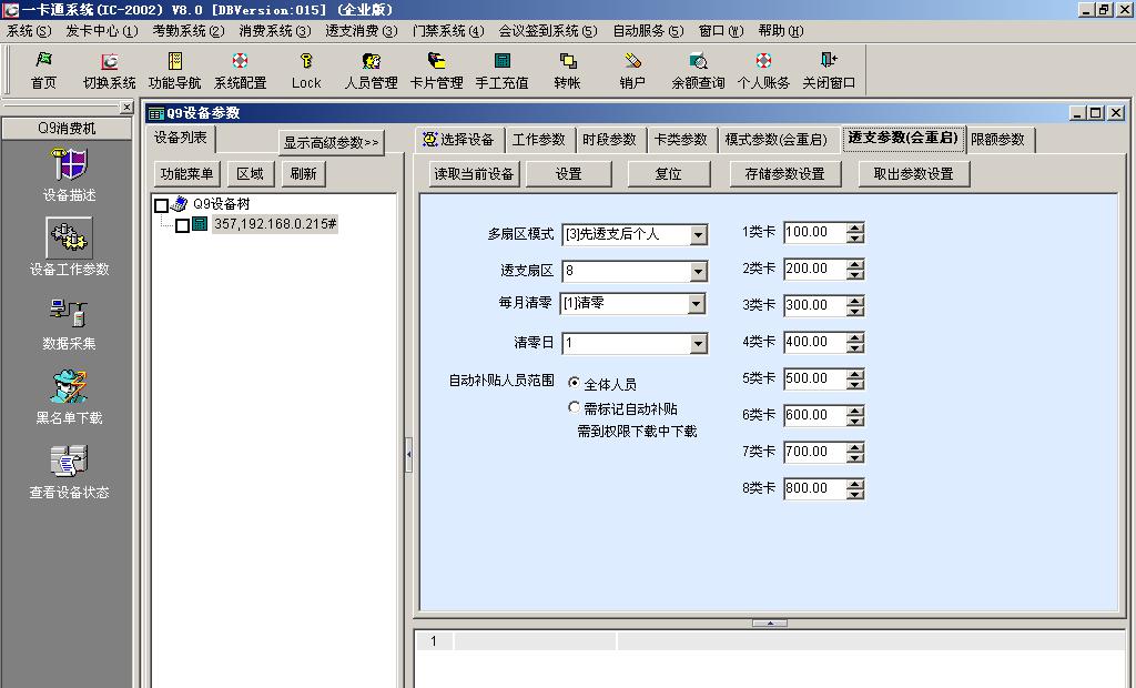 廣東河源高新區的龍記集團是世界前五、亞洲第一的模架、模鋼制造企業,有員工7000多人,員工吃飯采取公司補貼制度,分8類不同的卡類進行控制,公司補貼的錢進入透支區,其中8類卡為家屬卡或外界供應商卡,透支區不補貼,只能通過現金充值到個人區的方式消費,7類卡為新員工卡,需要限定每天透支區最高消費21元,超出部分需要員工自行現金充值就餐,其他類卡不需要日限制,但花完每月的公司的補貼則需要自行現金充值到個人區就餐。8類卡的消費折扣率還不同,例如設定為5元的菜,員工去消費折扣率為100%,則依然是5元,如果是8類卡,則按設定的折扣率150%,需要扣7.5元。采用了海威達的雙錢包消費方案后,這些問題的得到了100%的解決,原先他們比較頭痛新入職員工的就餐管理,讓新員工完全自己用現金充值,恐怕剛進廠本來就沒錢,如果公司一次性給了200的卡或票據,又會存在一次性消費掉,然后自離的現象,采取這種雙錢包的方式,既可以保障新員工基本生活要求,又允許他自行充值提高伙食標準。
