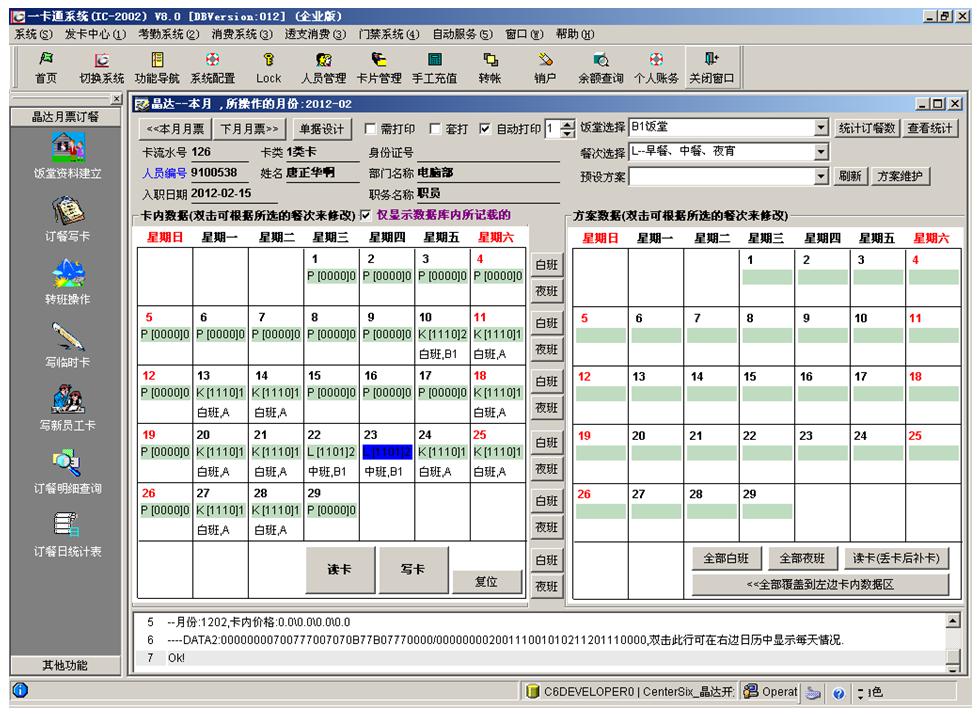 我們總結(jié)一下這種情況,首先食堂是工廠自己負(fù)責(zé),不希望浪費(fèi);食堂多個(gè),必須合理分流就餐人數(shù);食堂的主要消費(fèi)模式為固定餐,刷卡時(shí)只需判斷是否訂餐,而不是個(gè)性化的扣費(fèi)模式。月票訂餐模式就是基于這一種客戶需求開發(fā)出來的一種消費(fèi)模式。